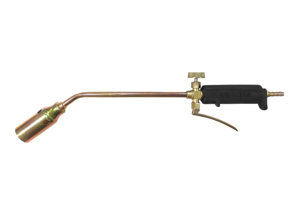 Воздушная горелка Профессионал сопло 30 мм, длина 35 см, рычаг 0002078 предназначена для проведения кровельных работ. Приспособление используется для просушивания литейных форм, оплавления покрытий, прогрева и пайки заготовок. Наконечник имеет изогнутую форму для выполнения задач в зонах с трудным доступом. Контроль подачи газа осуществляется с помощью удобного рычага и вентиля.