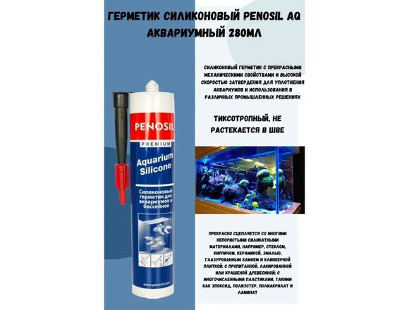 PENOSIL Premium Aquarium Silicone - Кислотный силиконовый герметик для внешних и внутренних работ. Используется для сборки и уплотнения аквариумов, отделке душевых кабин, склеивании стеклянных конструкций, в том числе витрин.