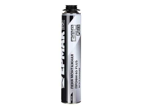 Монтажная пена Ермак Профи 65 PLUS всесезонная, 850 гр, под пистолет, выход пены до 50 л 469-244 предназначена для монтажа окон, дверных блоков, подоконников, а также для герметизации щелей, пустот и шумоизоляции швов. Необходима при проведении монтажных, строительных и отделочных работ.