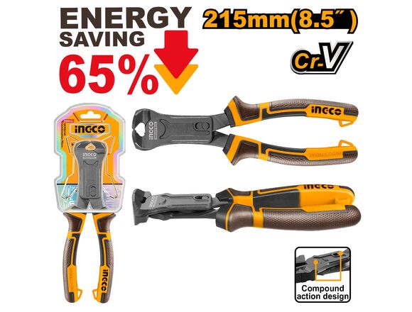 Кусачки торцевые INGCO INDUSTRIAL +65% усиленные BLACK 215мм (6/36)