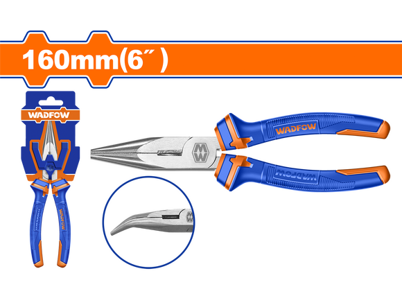 Тонкогубцы WADFOW 160мм изогнутые, 2К ручка (1/36)