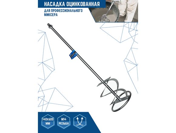 Миксер 140x600 мм, М14 vertextools 0025-140 - насадка для перемешивания по вертикали вверх с 2-мя рабочими лопастями. Подходит для специальных миксеров цементных и гипсовых растворов и плиточного клея.