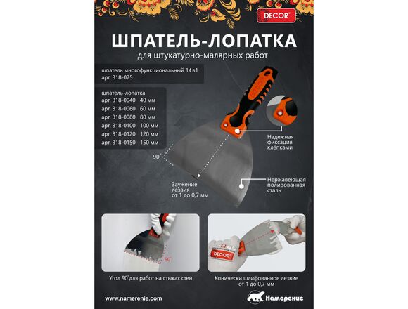Шпатель-лопатка DECOR 40 мм,2К ручка (16уп/64шт/320шт)