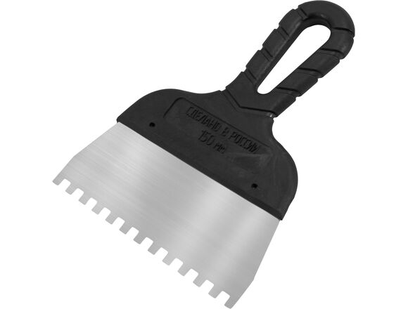 Шпатель зубчатый DECOR 200мм, зуб 10*10 мм нержавеющая сталь, черная ручка (30/150)