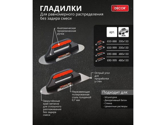 Гладилка DЕCOR PROFI 480*130мм ЗАКРУГЛЕННАЯ (5/20)
