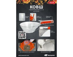 Ковш строительный DECOR 1,1л УДАРОПРОЧНЫЙ, плоское ДНО, ручка 2К (8/24)