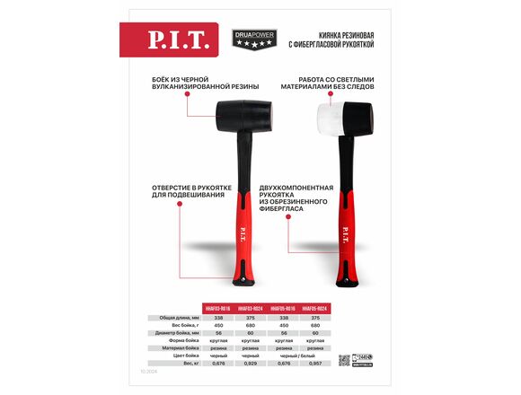 Киянка резиновая P.I.T. 680гр черная 2К РУЧКА (1/12)