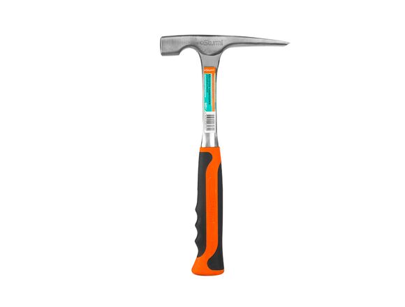Молоток каменщика применяется для ударных работ с камнем, бетоном или кирпичом. Оснащен двусторонним бойком из прочной стали, которая отличается стойкостью к большим нагрузкам. С одной стороны боек клиновидный, с другой квадратный. Двухкомпонентная рукоять оснащена антискользящим покрытием.