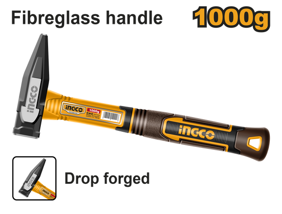 Молоток слесарный INGCO 1000гр, фибергласс NEW (6/12)