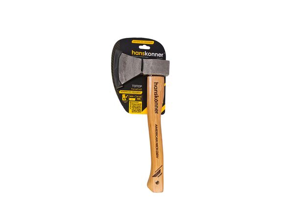 Топор HANSKONNER 600г длина 360мм, рукоятка дерево ГИКОРИ ( АМЕРИКАНСКИЙ ОРЕХ )(6/24)