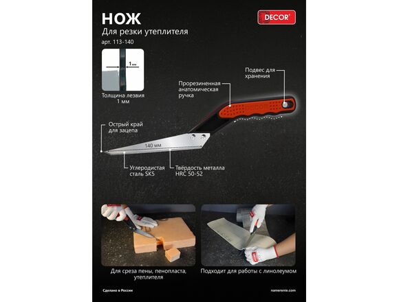 Нож DECOR для утеплителя 140 мм (6/30/150)