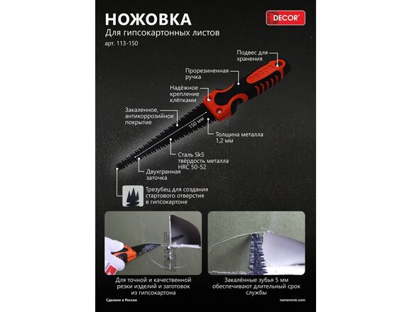 Ножовка DECOR для ГКЛ 150 мм (48/240)