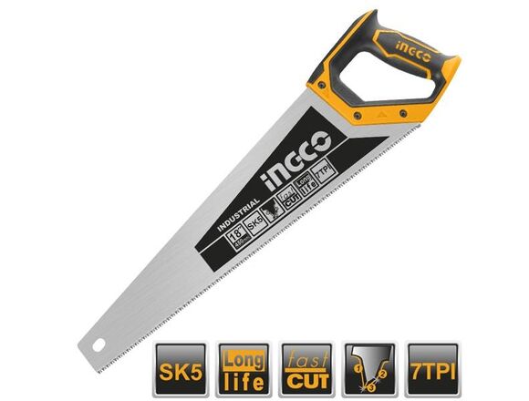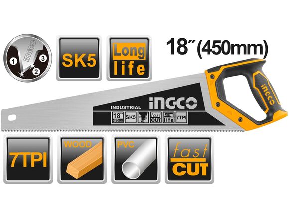 Ножовка по дереву INGCO INDUSTRIAL LONG LIFE 450мм, SK5, 7TPI