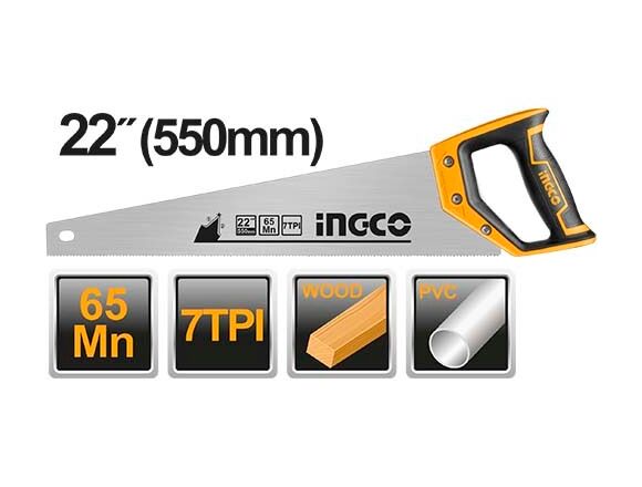 Ножовка по дереву INGCO 550мм, 7TPI, EXTRA SHARP (6/24)