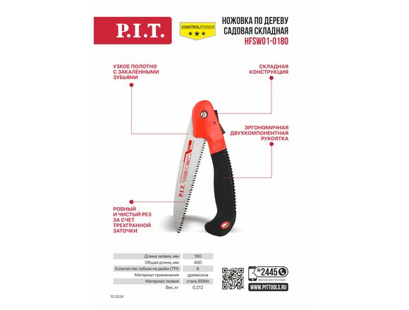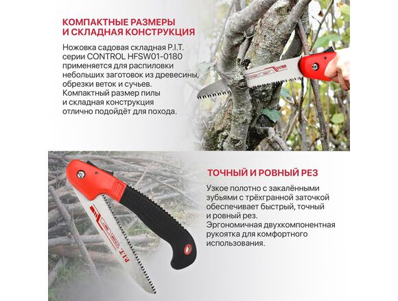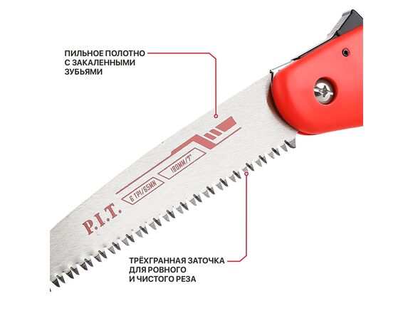 Ножовка садовая складная P.I.T. серия CONTROL 180мм, 7 TPI, 212г, сталь 65Mn (12/72)