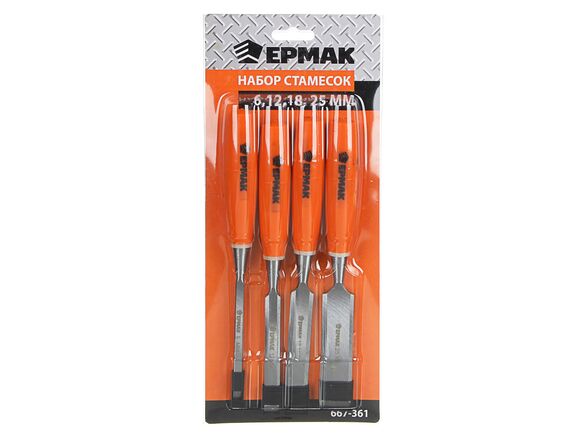 Набор стамесок ЕРМАК пластиковая ручка, 4 предмета 667-361 предназначен для выполнения столярных и слесарных работ. Инструменты оснащены удобными двухкомпонентными рукоятками, которые не скользят в руке мастера во время работы. Рабочая часть выполнена из высококачественной и прочной стали. Благодаря этому инструменты отличаются надежностью и долговечностью.