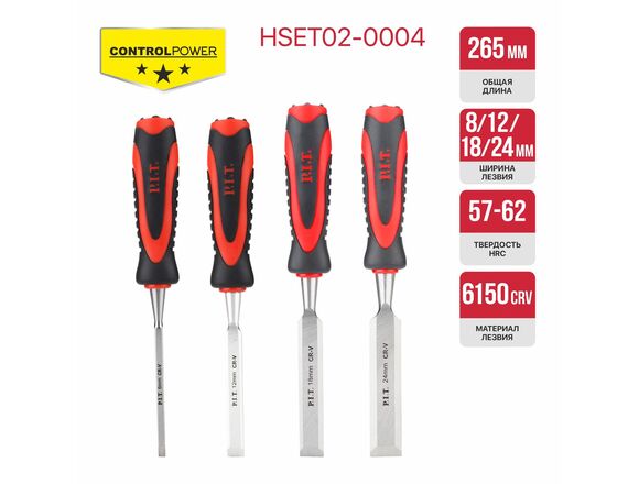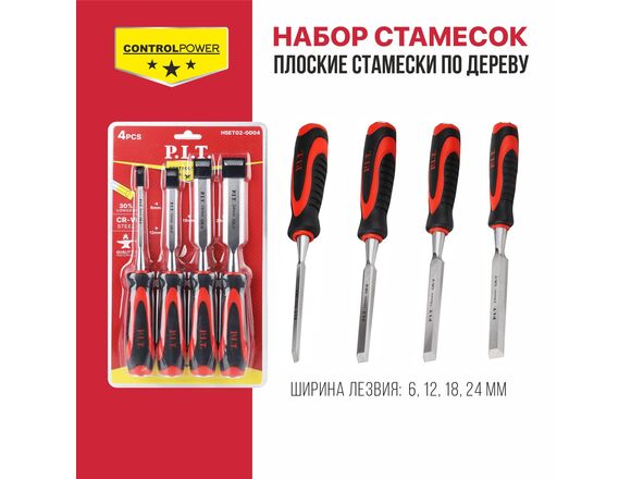 Набор стамесок по дереву плоские P.I.T. 4шт 6/12/18/24мм 265*135мм серия CONTROL (1/20)