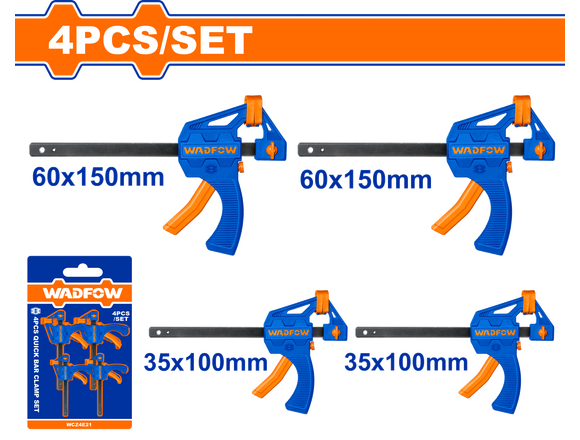 Набор струбцин быстрозажимных WADFOW 35*100/60*150мм 4 шт (1/12)
