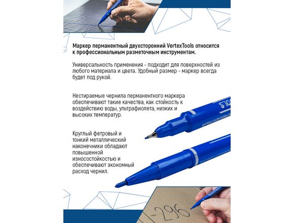 Строительный маркер vertextools синий, двухсторонний 00010-03 относится к профессиональным разметочным инструментам.