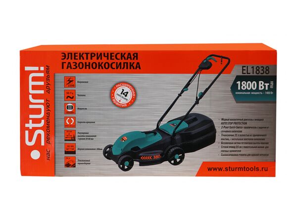 Электрическая газонокосилка Sturm EL1838 ухаживает за придомовой территорией.