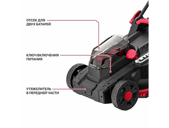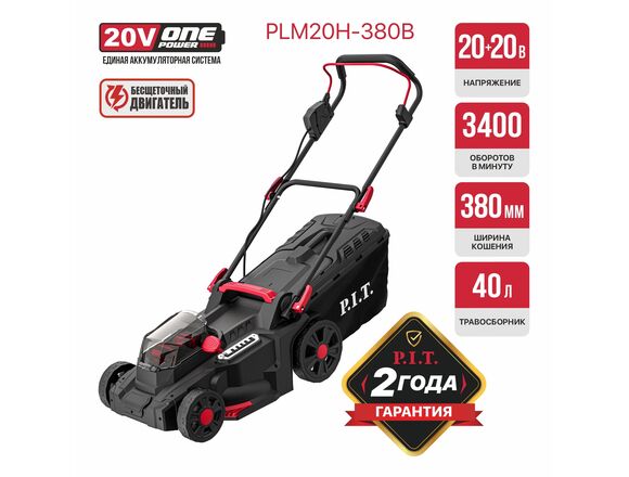 Газонокосилка OnePower Б/Щ P.I.T 20В+20В шир. кош 370мм, высот 25-75мм,(1/1)