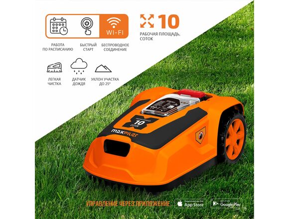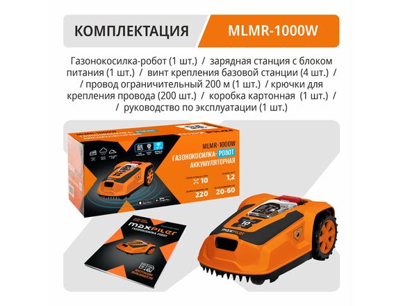 Газонокосилка-робот с Wi-Fi аккум. бесщёточная MAXPILER MLMR-1000W (20В, 22см, 25-60мм, ск.1.2км/ч),