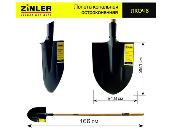 Лопата ZINLER копальная остроконечная с деревянным черенком 1400 мм Z1.3H6 (1/5)