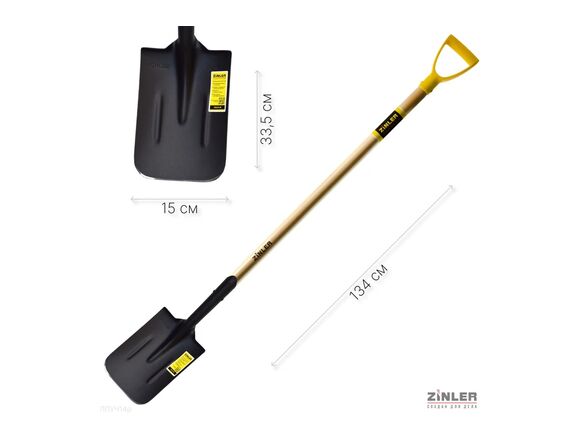 Лопата ZINLER прямоугольная универсальная с дер. чер. 960 мм и ручкой (ЛПУЧ14р) - Z1.13H14G