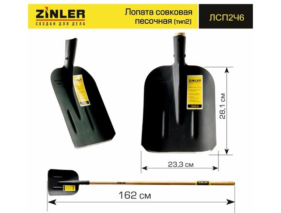 Лопата ZINLER совковая песочная (тип2) с деревянным черенком 1400 мм Z1.4H6