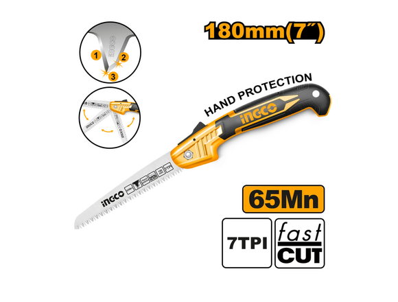 Ножовка садовая INGCO 180мм, 7TPI, СКЛАДНАЯ (6/48)