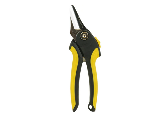 Оснащен лезвием, которое расположено под углом к основной оси ручек. Благодаря этому удобно работать с цветами, тонким ветвями. Верхнее лезвие из стали SK5 с защитой от прилипания.