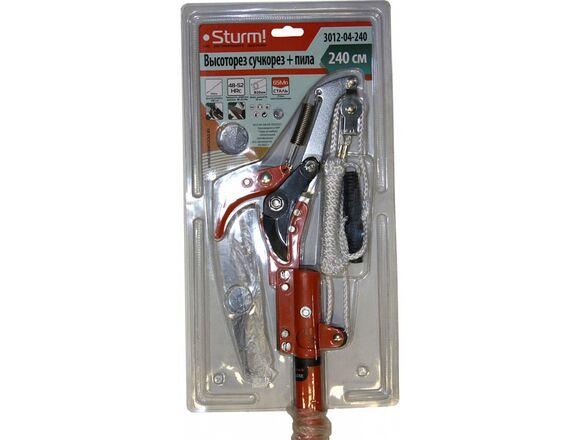Высоторез сучкорез + пила Sturm 3012-04-240 используется для ухода за садовыми деревьями.