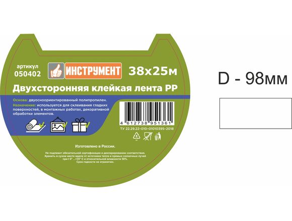 Лента двухсторонняя на ПОЛИПРОПИЛЕНОВОЙ основе 38мм х 25м "СУПЕРИНСТРУМЕНТ" (1/36)