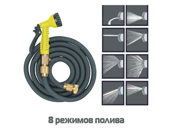 Шланг для полива растягивающийся INBLOOM 2,5-7,5м, ЛАТУНЬ / ЛАТЕКС / ПОЛИЭСТР, пистолет 10реж (1/12)