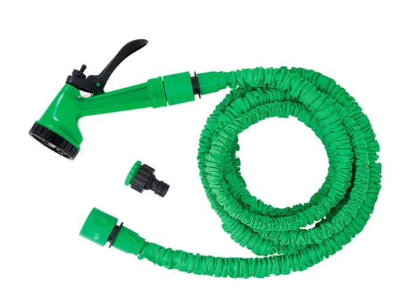 Способность шланга сжиматься и растягиваться от 10 до 30 м обеспечивает комфортную работу и компактность при хранении.