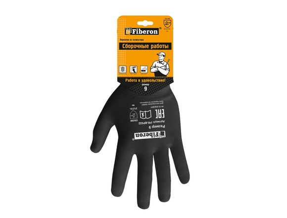 Перчатки FIBERON DEKOR "Сборочные работы", полиэстер, в и/у, 9(L), черные (12/300)