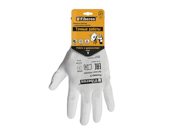 Перчатки FIBERON МАЛЯР "Точные работы", полиэстер, полиуретановое покрытие, в и/у, 9(L), черные,