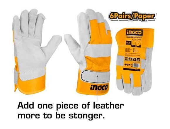 Перчатки кожанные 10,5" INGCO (индивидуальный подвес) (12/72)