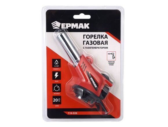 Горелка газовая ЕРМАК с пьезоподжигом, 360гр, широкое сопло латунь (2/80)