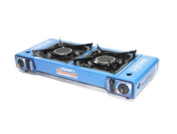 Двойная газовая плита с переходником Следопыт UltramaX PF-GST-DM02 подходит для больших компаний. Может использоваться для приготовления пищи на даче, в загородном доме или на открытом воздухе. Работает от портативного газового баллона с нажимным клапаном и цанговым захватом.