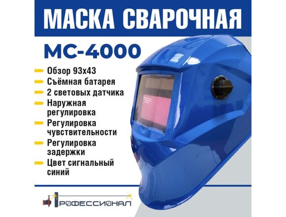 Маска сварщика "Хамелеон"ПРОФЕССИОНАЛ МС-4000 (синяя) 93*43 DIN13 датчик-2шт сменная батарея