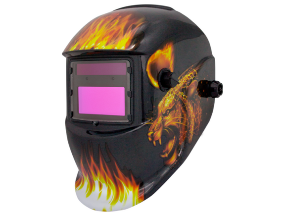 Маска сварщика "Хамелеон"ПРОФЕССИОНАЛ МС-6000 с рисунком (ЛЕОПАРД) 90*35 DIN13 датчик-2шт сменная б