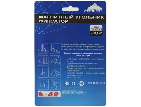 Магнитный сварочный угольник VERTEXTOOLS 45гр, 90гр, 135гр, до 34,9 кг. (6/18)